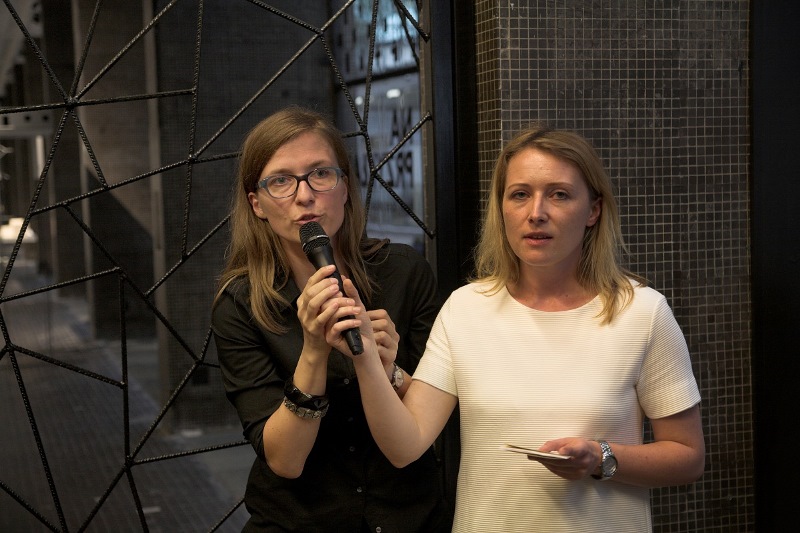 Agnieszka Rasmus-Zgorzelska i Aleksandra Stępnikowska, kuratorki, na wernisażu wystawy „Na przykład. Nowy dom polski”, fot. Piotr Ostrowski (źródło: materiały prasowe organizatora)