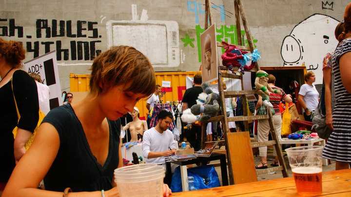 Plakat Piotrka Chuchli prezentujący komplet okazjonalnych vlepek wykonanych dla NFS3 przez 11 zagranicznych artystów
