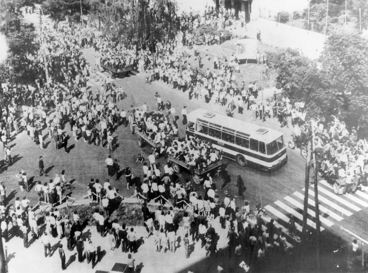 Pracownicy radomskich zakładów zgromadzeni przed budynkiem KW PZPR. 25 czerwca 1976, Radom, fot. NN, zbiory Ośrodka KARTA (udostępnił Mizerski)