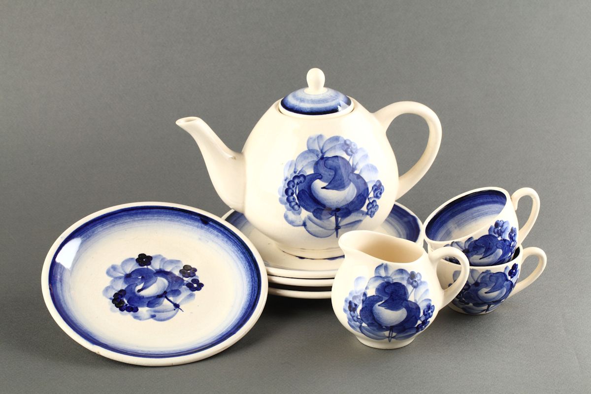 Zestaw śniadaniowy, Zakłady Fajansu „Włocławek” we Włocławku, koniec l.50.XX w., fajans malowany podszkliwnie, własność Marzena i Wacław Sawicz (źródło: materiał prasowy)