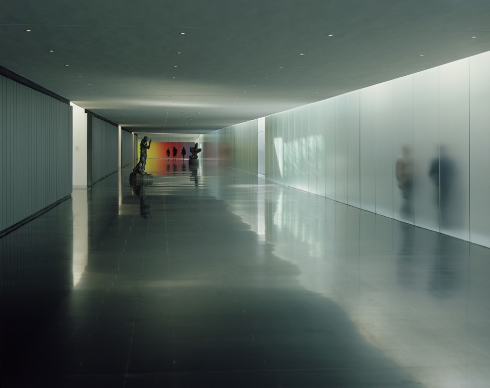 Widok na przejście w łączniku prowadzącym do nowego pawilonu z wejściem do galerii Israel Museum w Jerozolimie, w perspektywie: Olafur Eliasson „Whenerver the Rainbow Appears” (praca z 2010 roku) (źródło: materiały prasowe organizatora)