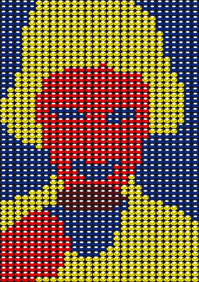 Thomas Bayrle,Kawa z mlekiem / Milchkaffee, 1967, sitodruk na plastiku / silkscreen on plastic, 200 x 145 cm, Städtische Galerie, Wolfsburg (źródło: materiały prasowe organizatora)