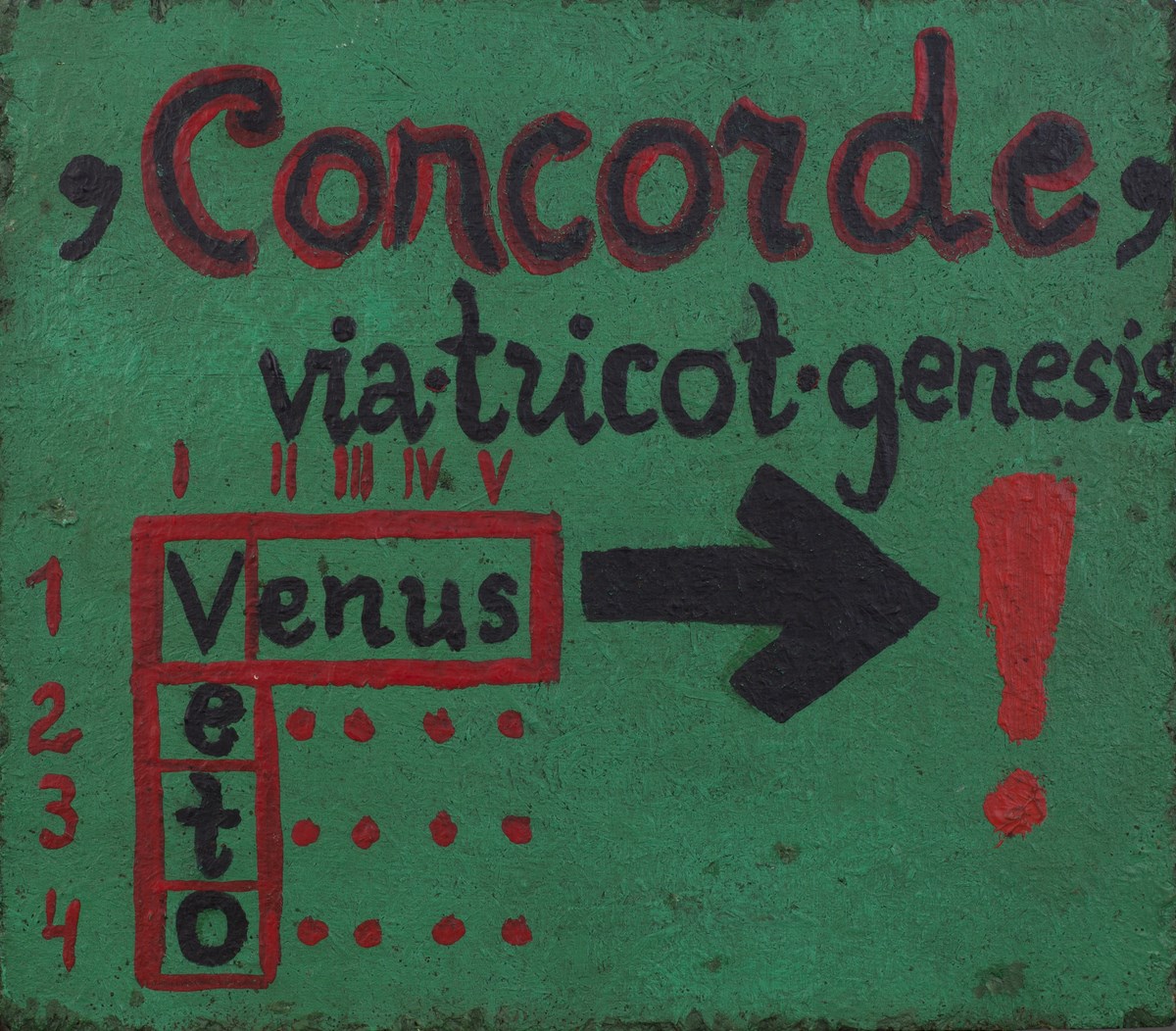 Andrzej Partum, „Concorde…”, 1971, akryl na płycie wiórowej, 18,5 x 21 cm (źródło: materiały prasowe organizatora)