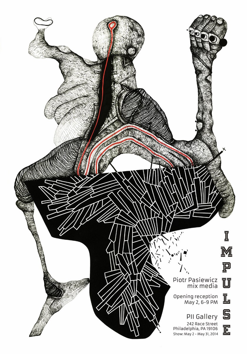 Piotr Pasiewicz debiutuje w USA – grafiki polskiego artysty w Filadelfii ← Poprzedni Piotr Pasiewicz, „Impulse”, Galeria PII w Filadelfii, plakat wystawy (źródło: materiały prasowe organizatora) Piotr Pasiewicz, „Impulse”, Galeria PII w Filadelfii, plakat wystawy (źródło: materiały prasowe organizatora)
