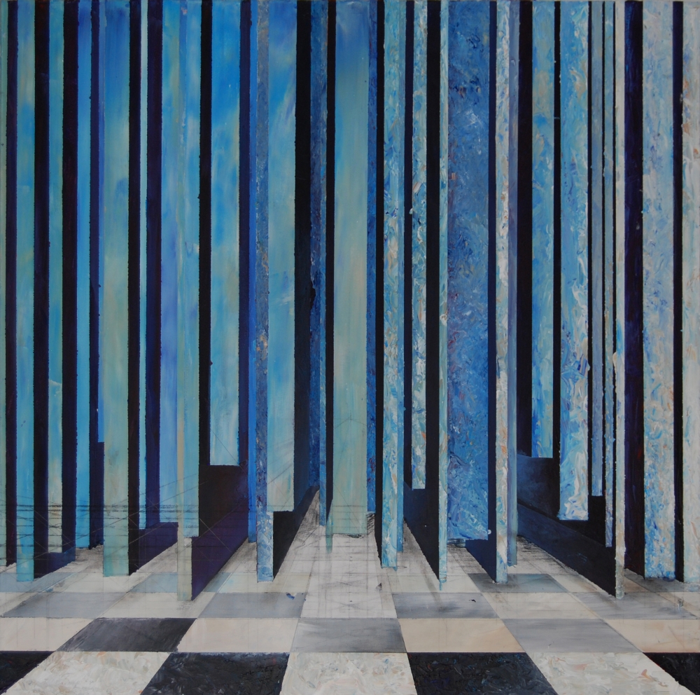 Karolina Balcer, „Balkony”, 9 blejtramow – razem, 110x160cm, akryl na płótnie, 2014 (źródło: materiały prasowe organizatora)