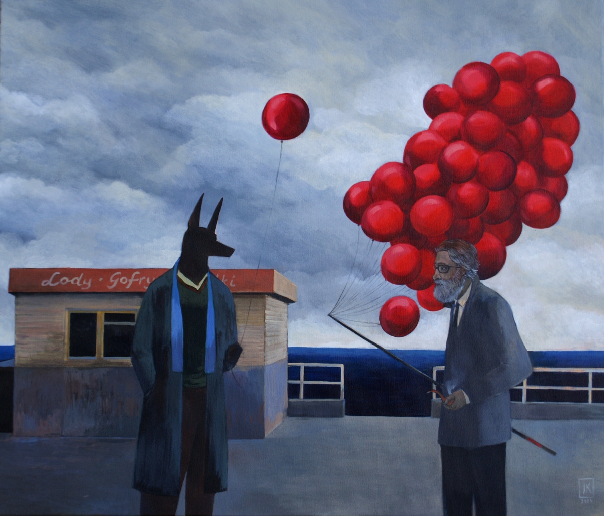 Joanna Karpowicz – komiksowe malarstwo ← Poprzedni Następny → Joanna Karpowicz, „A gentle monster passing by” (źródło: materiały prasowe organizatora) Joanna Karpowicz, „Anubis and red baloons” (źródło: materiały prasowe organizatora) Joanna Karpowicz, „Higher”, 2014 (źródło: materiały prasowe organizatora) Joanna Karpowicz, „Sandy”, 2013 (źródło: materiały prasowe organizatora)