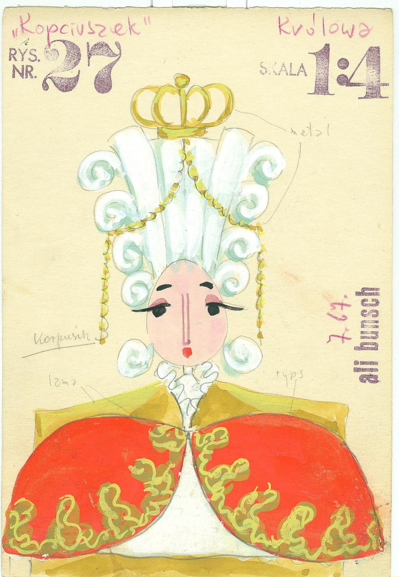 Ali Bunsch, Królowa – projekt lalki do „Kopciuszka”, 1967, własność Muzeum Archeologicznego i Etnograficznego w Łodzi (źródło: materiały prasowe)