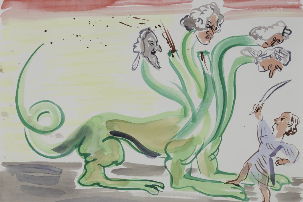 Rytownik nieustalony, „Potwór o trzech głowach”, około 1790. Akwaforta kolorowana akwarelą i bielą (źródło: materiały prasowe organizatora)